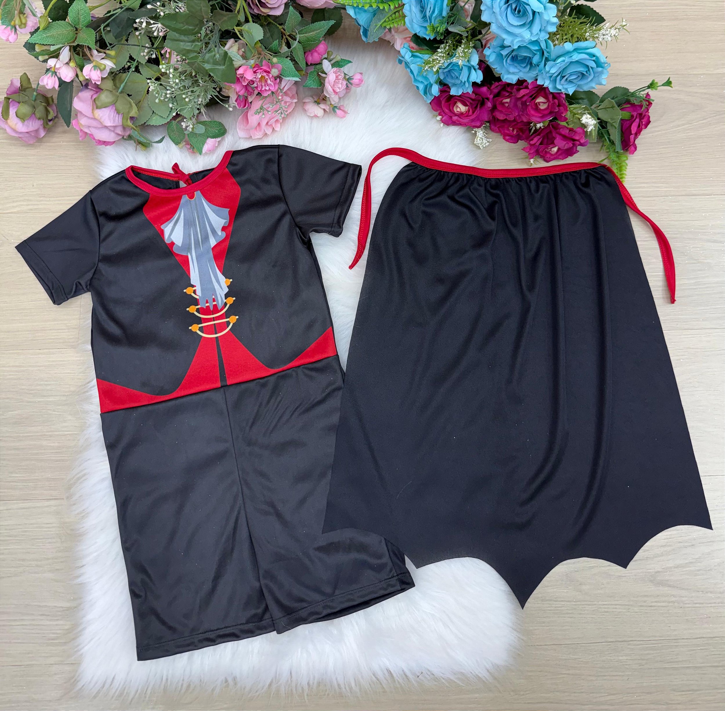 Com design inspirado no clássico Conde Drácula, essa fantasia une conforto, estilo e diversão para encantar nas festas e brincadeiras.