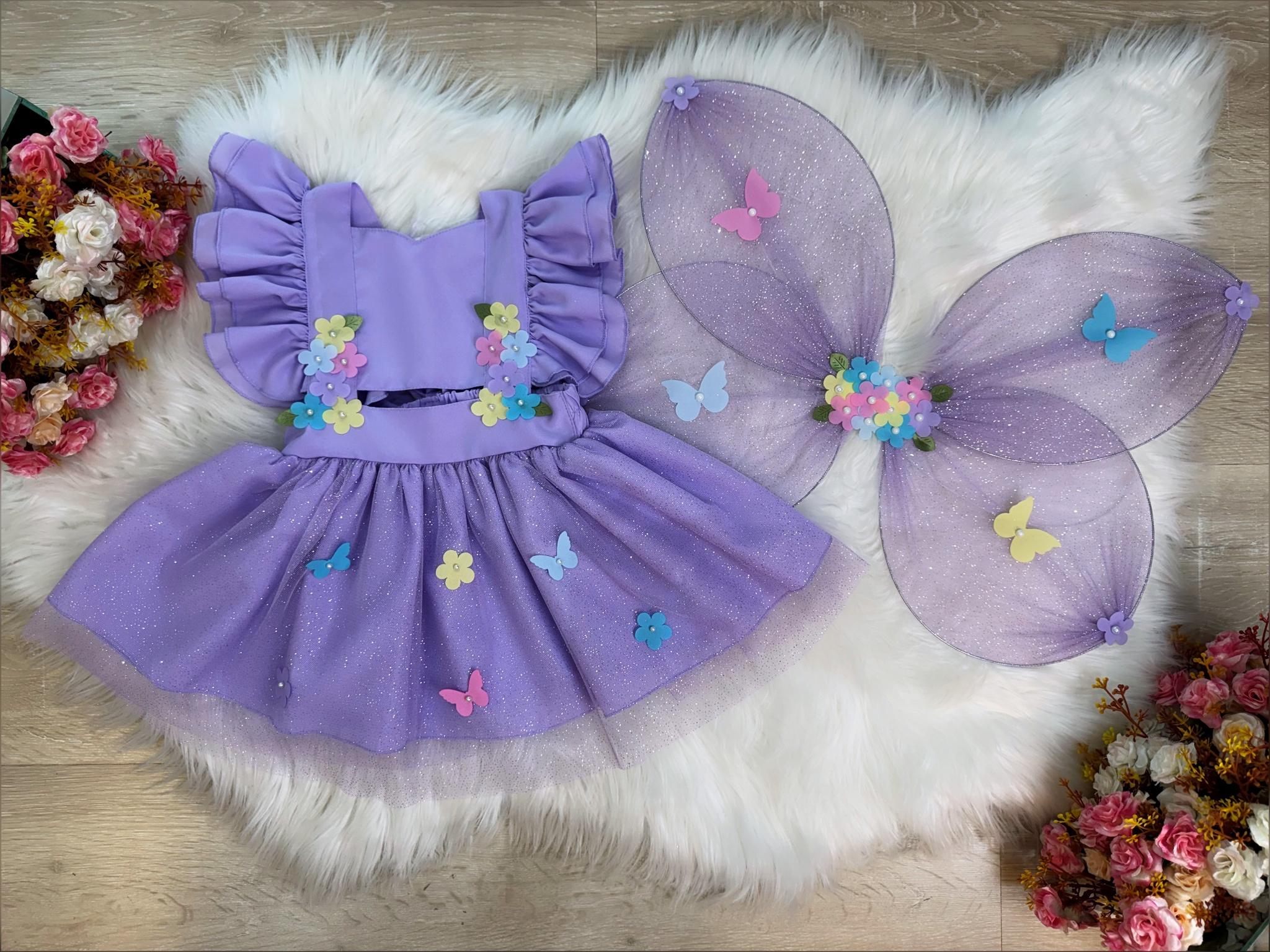 Fantasia Romper Lilas Jardim Encantado Com + Asa 2 Peças
