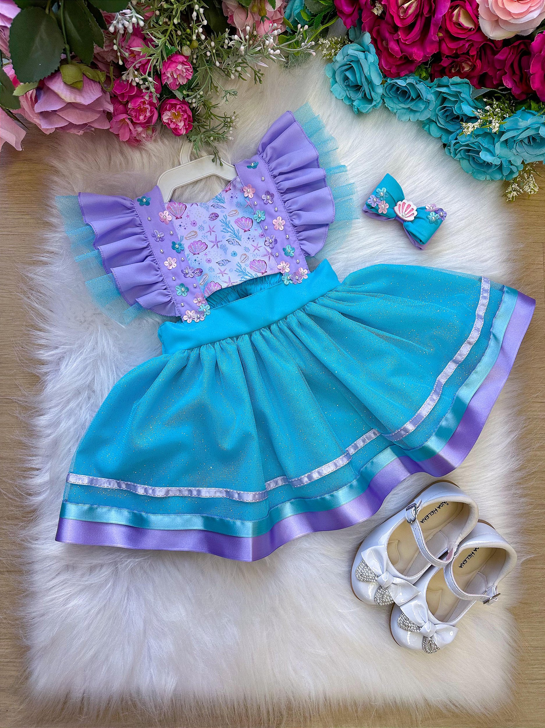 Confeccionado em tecido misto possui forro em poliéster e algodão para não incomodar a criança e proporcionando um caimento incrível e sofisticado, possui gola redonda, comprimento médio, mangas curtas, possui elástico nas costas para melhor ajuste, acabamento com lindo laço na parte posterior do vestido completa o look dos sonhos!