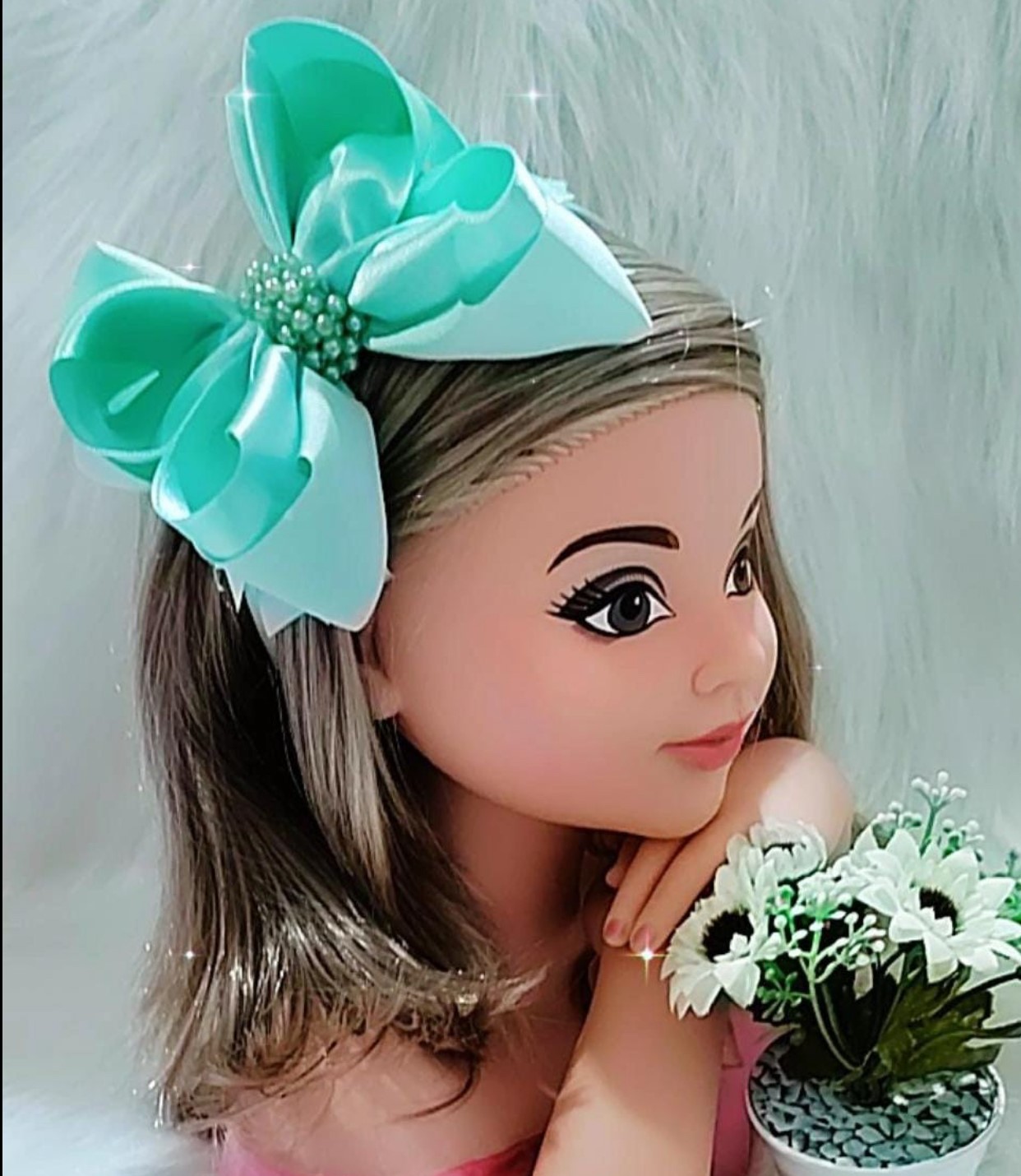 Tiara Verde Claro Laço Miolo de Pérolas