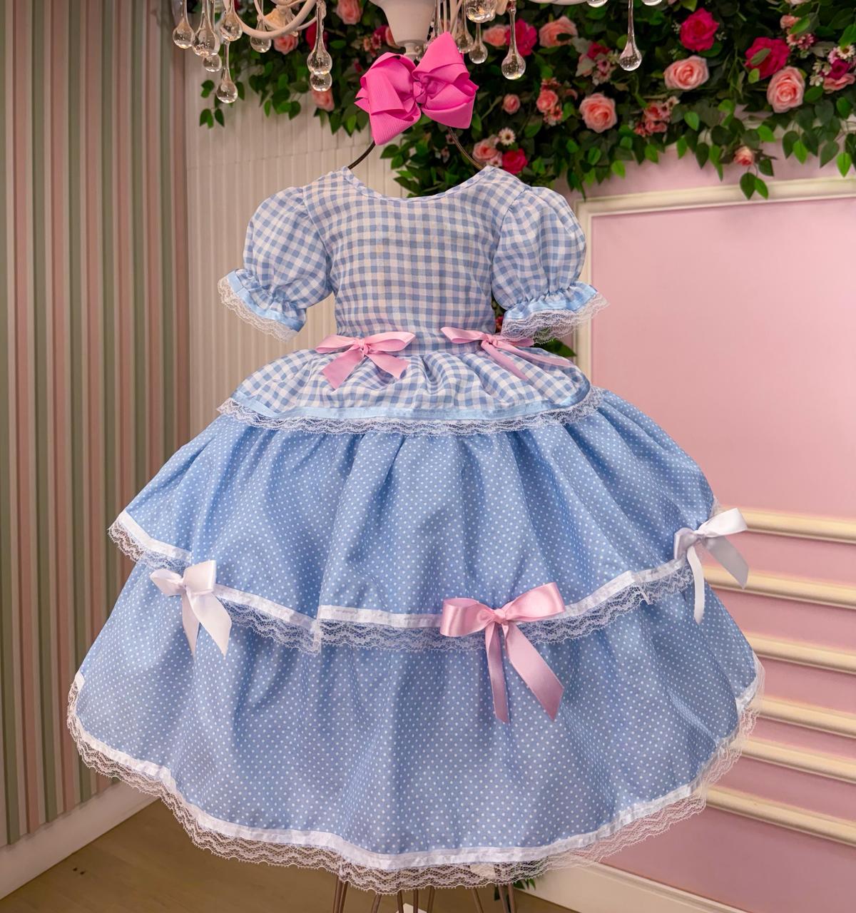 Vestido Infanntil Junino Luxo Azul Bebe Quadrilha Festa Junina