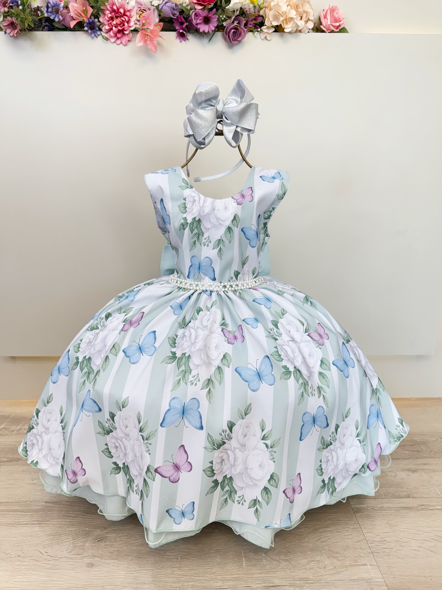Vestido Infantil Branco Colorido Jardim das Borboletas Festas