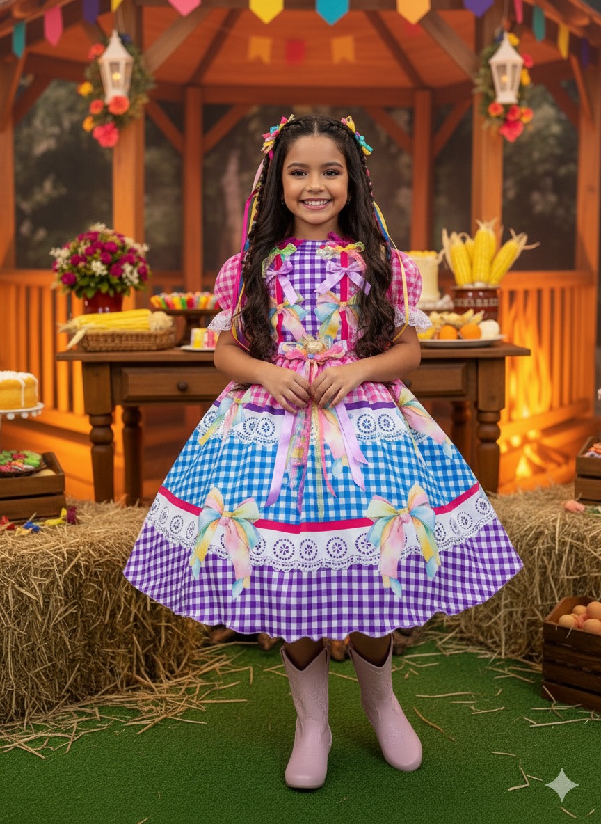 Vestido Infantil Junino Caipira Laço da Alegria