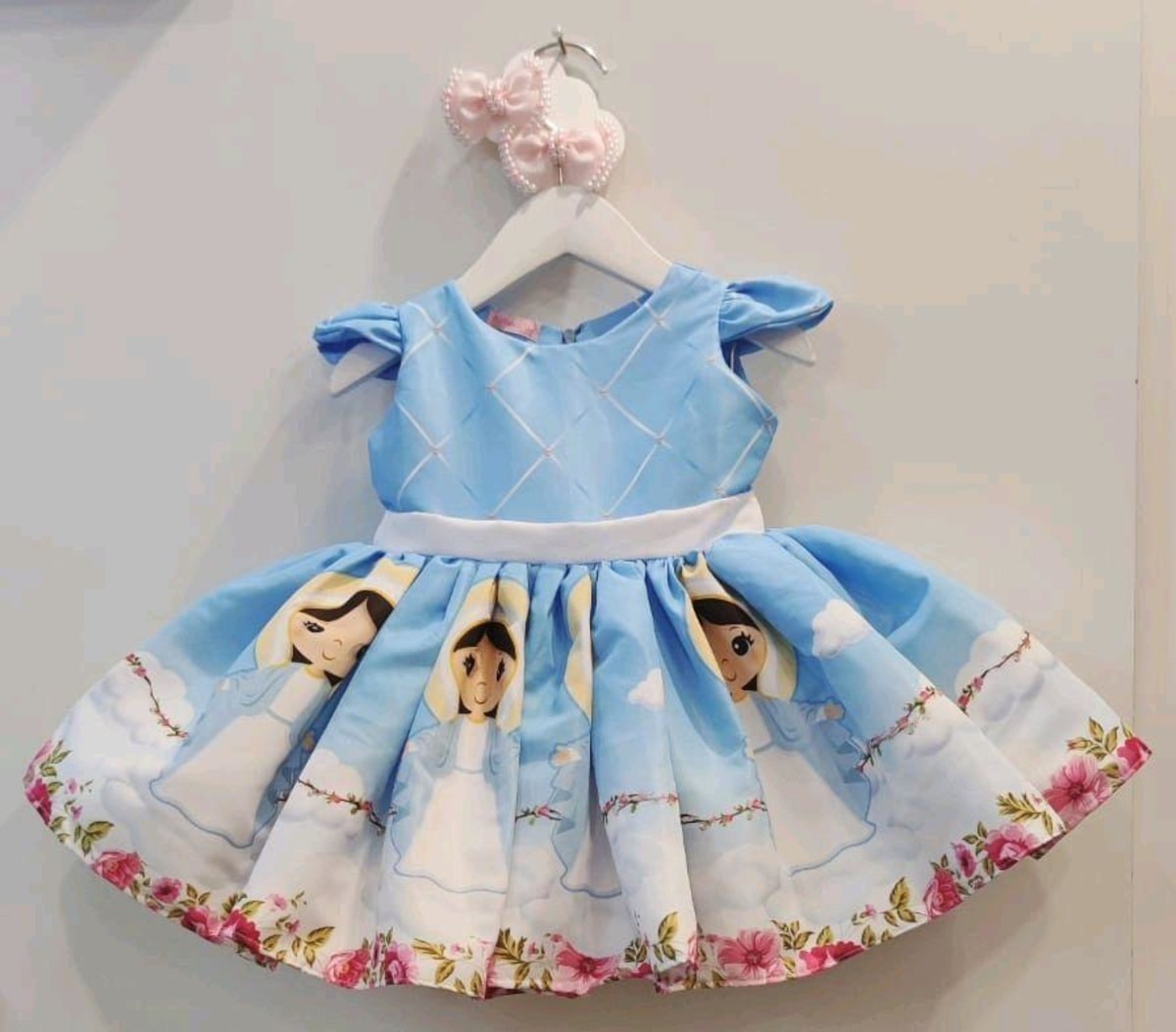 Todos os vestidos infantis incluem um laçarote na parte de trás, conforme mostrado nas fotos de divulgação.