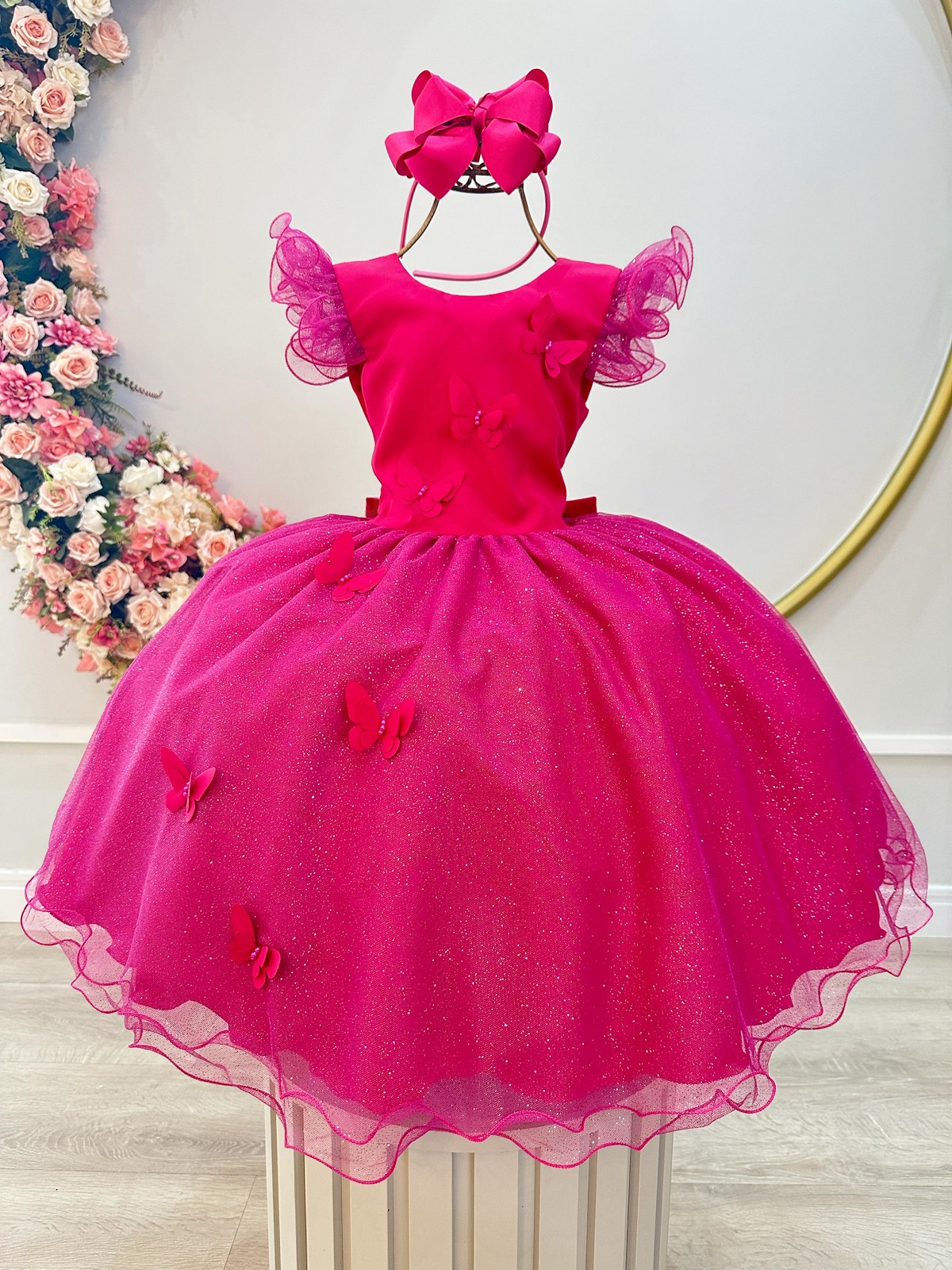 Vestido Infantil Pink Jardim das Borboletas Festas