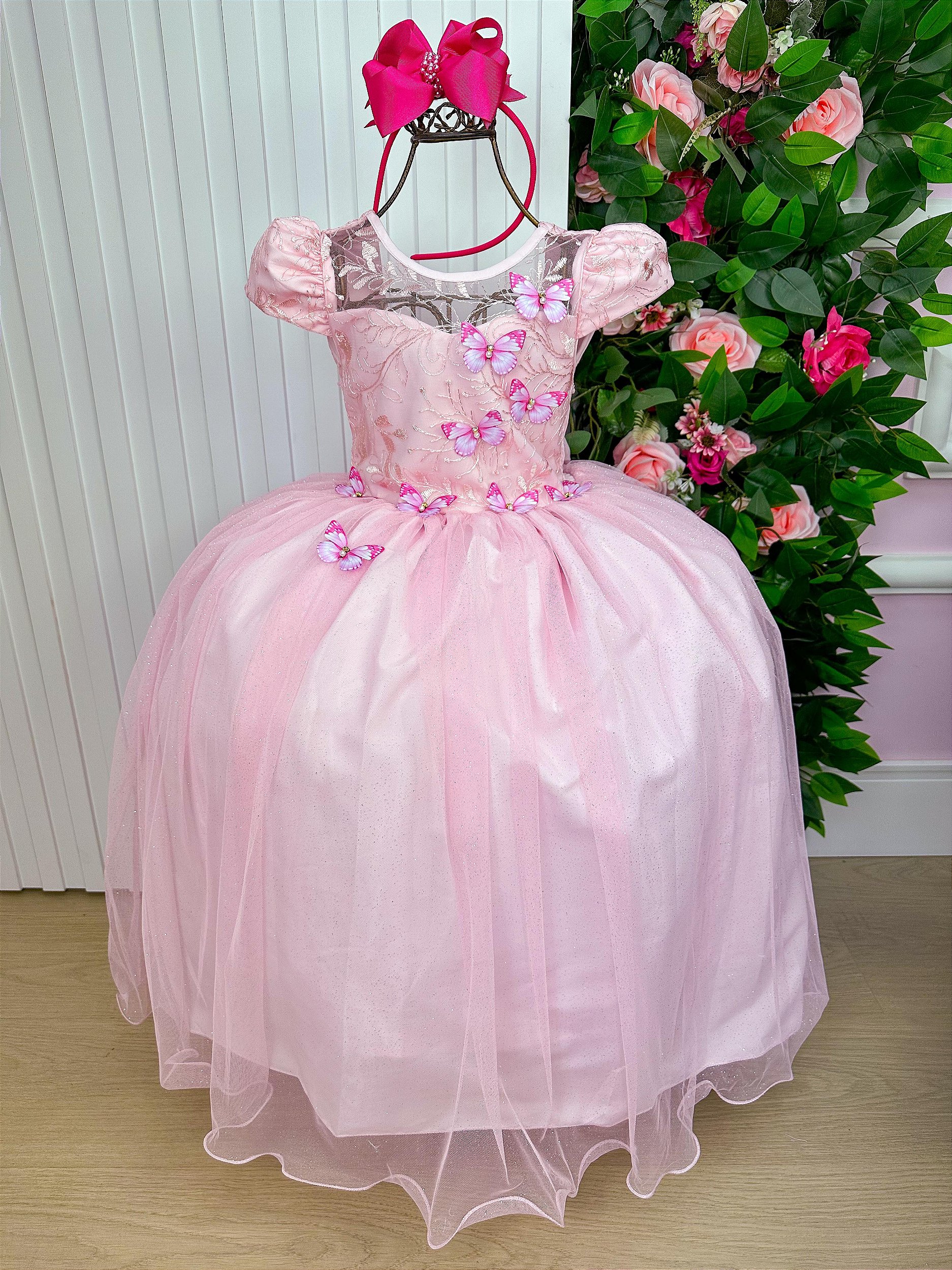 Confeccionado em tecido misto possui forro em poliéster e algodão para não incomodar a criança e proporcionando um caimento incrível e sofisticado, possui gola redonda, comprimento médio, mangas curtas, possui elástico nas costas para melhor ajuste, acabamento com lindo laço de pérolas completa o look dos sonhos!